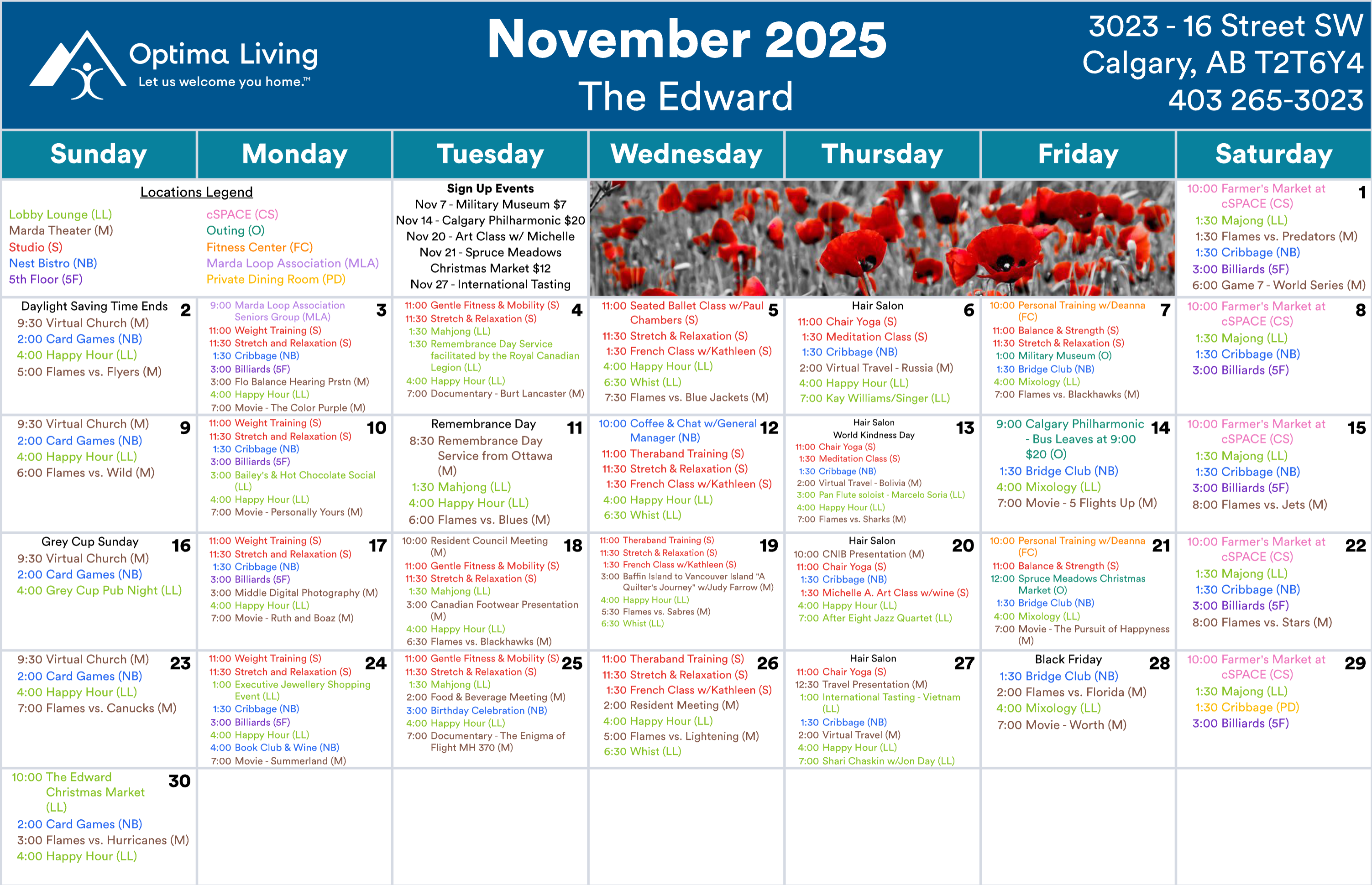 November 1st, 2025 Residence Events Events subject to change. Not all events open to the public. Call for details. Download
